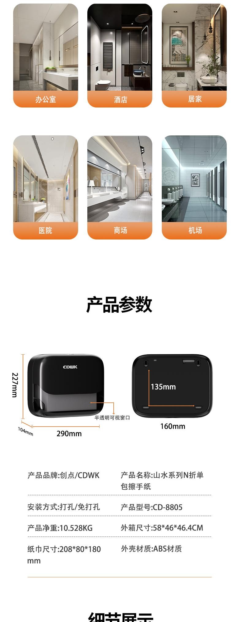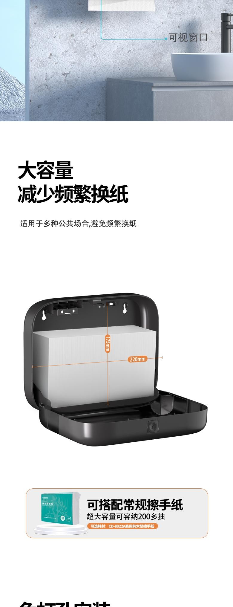 紙巾適配最大空間:222 × 80 ×180mm